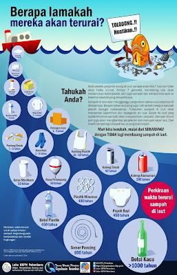 Sampah yang masuk ke laut umumnya mengandung banyak plastik dan logam yang mengalami proses pelapukan dan penguraian yang cukup lama yaitu 50 – 400 tahun.